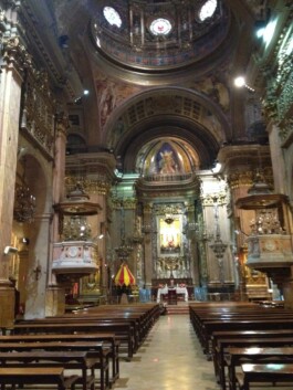 The dome of the church is crowned with a statue of Our Lady that is visible from the seaside promenade near the drassanes, all the way to the famous Mount Montjuic.